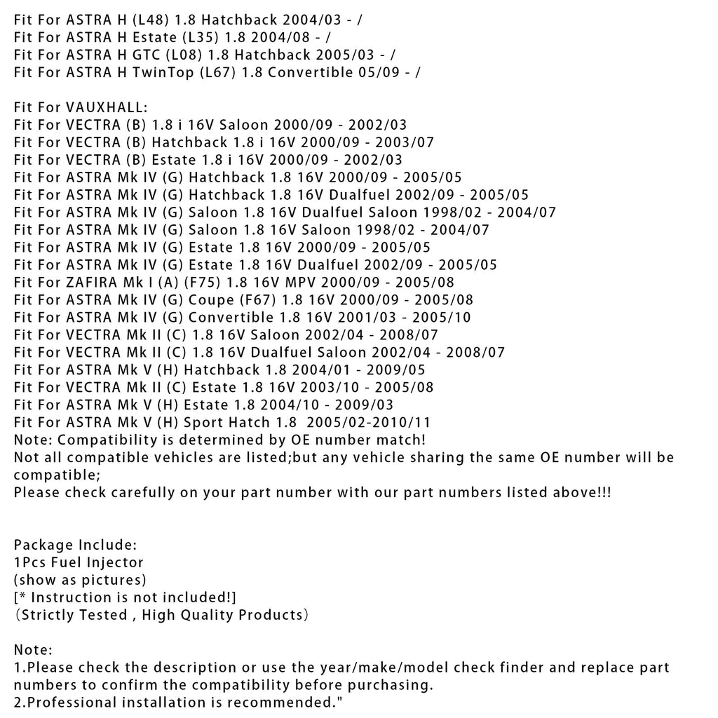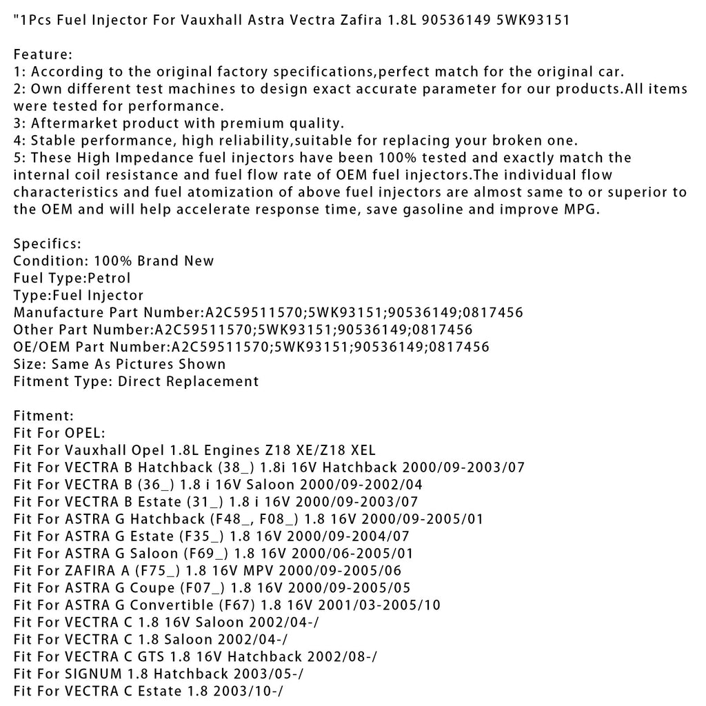 1 Stück Einspritzdüse für Vauxhall Astra, Vectra, Zafira 1,8 l, Teilenummer 90536149, Teilenummer 5WK93151