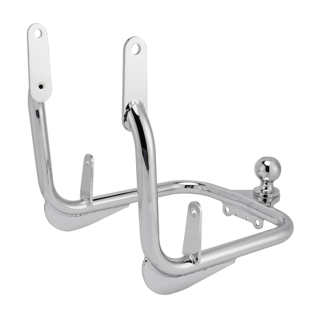 Die Anhängerkupplung wird an den inneren Rahmen-/Kotflügelstreben befestigt, und die unteren Halterungen werden an den Satteltaschenhalterungen verankert.