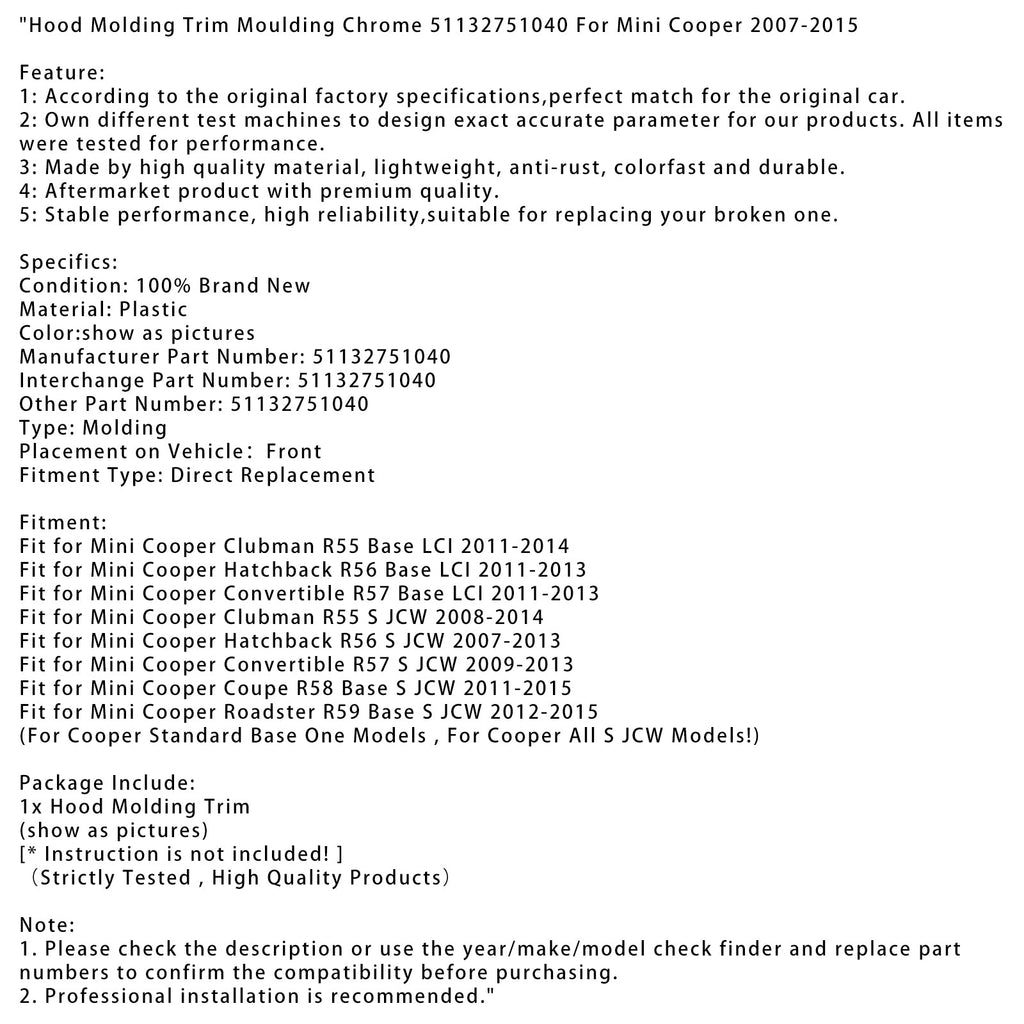 Huvgjutning krom 51132751040 för Mini Cooper 2007-2015