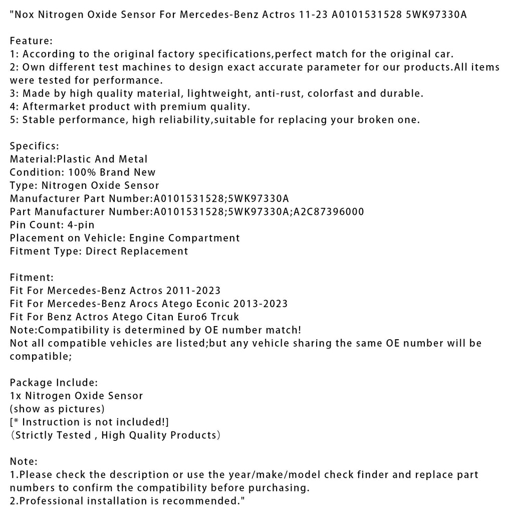 Mercedes-Benz Actros Atego Citan Euro 6 Traktor NOx Stickoxidsensor A0101531528 5WK97330A