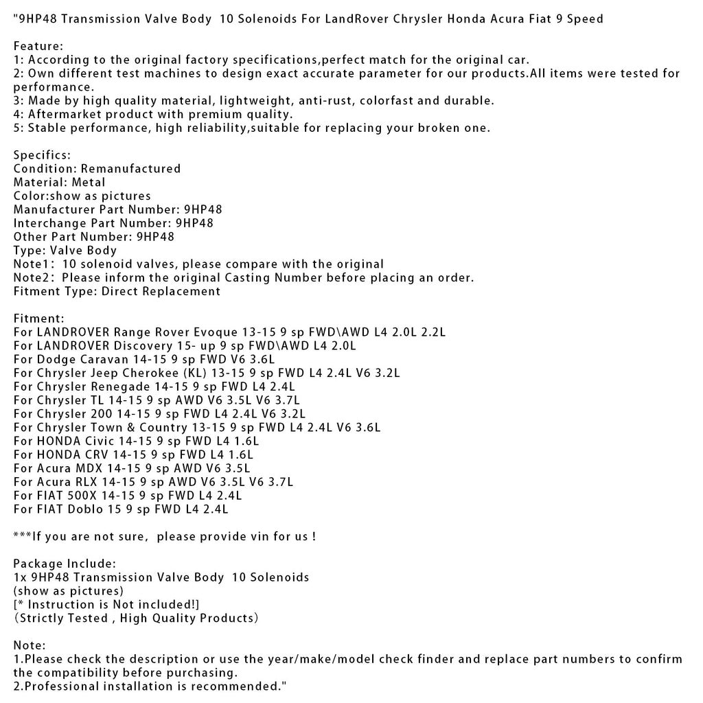 9HP48 Getriebeventilblock mit 10 Magnetventilen, passend für Land Rover, Chrysler, Honda, Acura, Fiat, 9-Gang-Getriebe