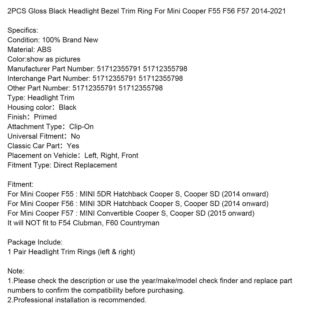 2 st glanssvarta strålkastarskyddsringar för Mini Cooper F55 F56 F57 2014-2021