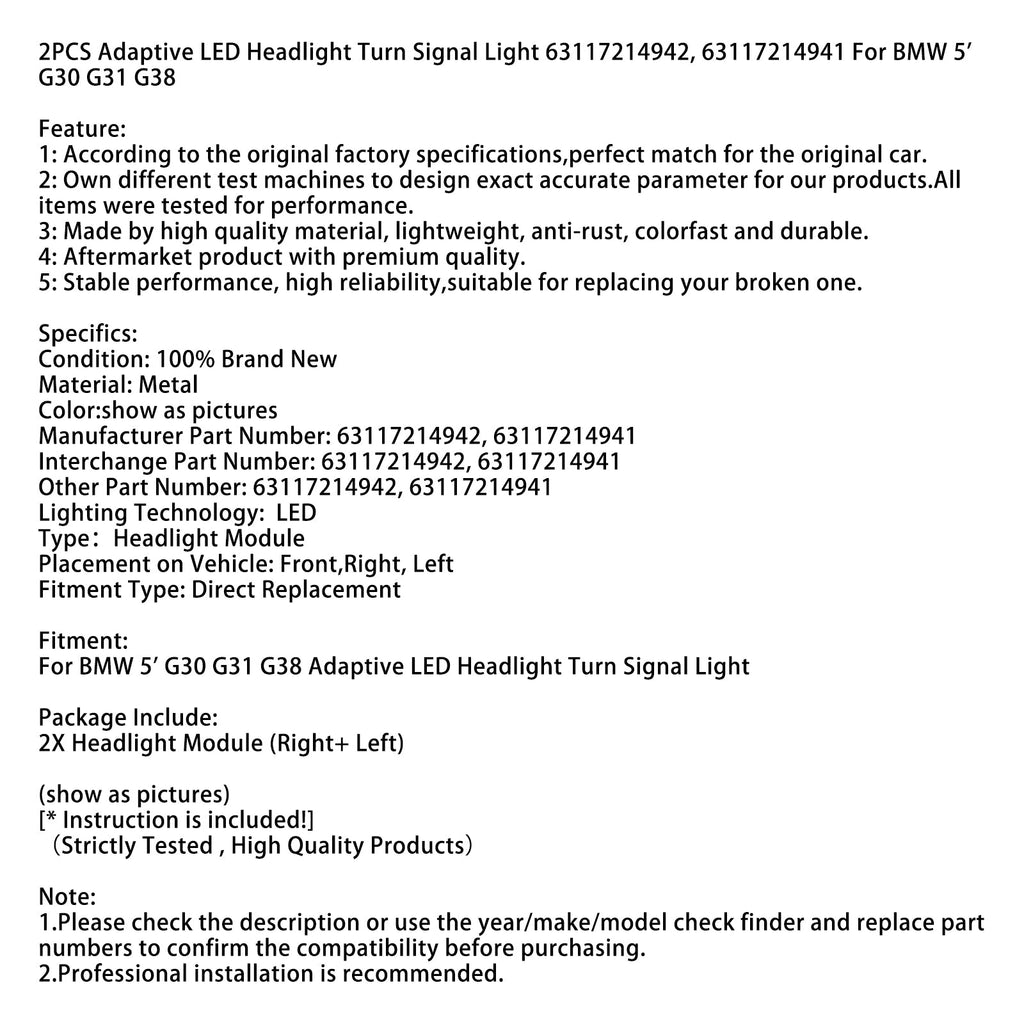 2PCS Adaptive LED Headlight Turn Signal Light 63117214942, 63117214941 For BMW 5' G30 G31 G38
