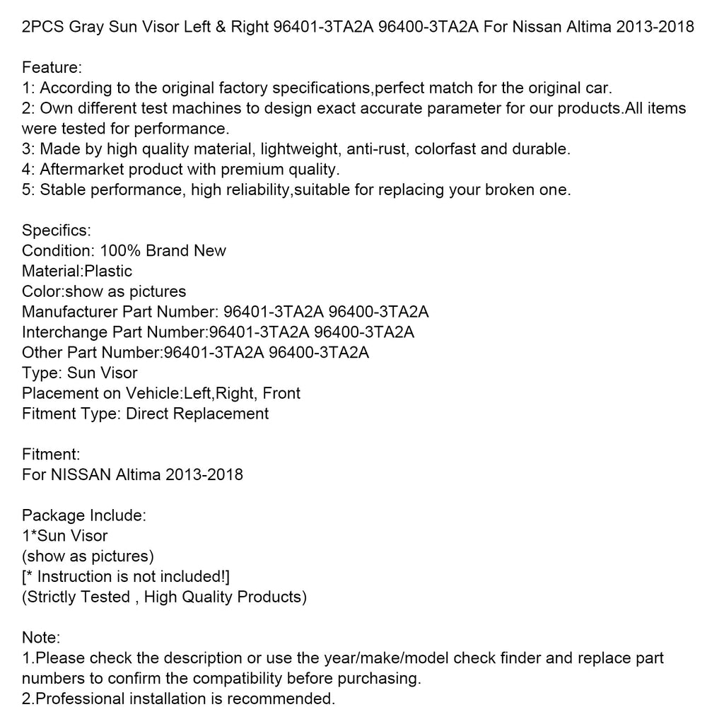 2PCS Gray Sun Visor Left & Right 96401-3TA2A 96400-3TA2A For Nissan Altima 2013-2018