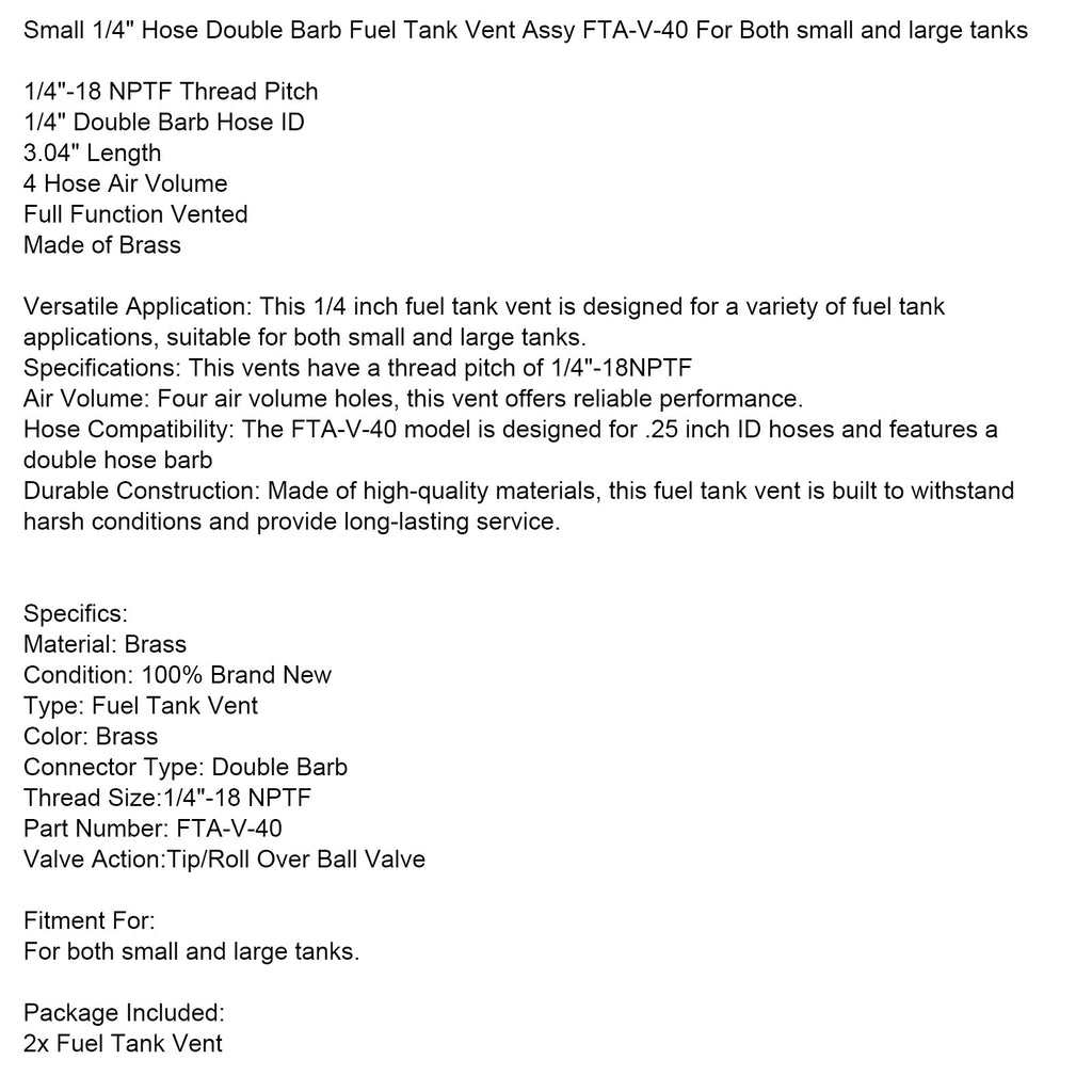 2x Kleine 1/4 ""Schlauch Doppel Barb Kraftstoff Tank Vent Assy FTA-V-40 Für Sowohl kleine und große tanks