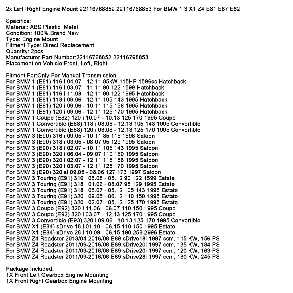 2x Links + Rechts Motor Montieren 22116768852 22116768853 Für BMW 1 3 X1 Z4 E81 E87 E82