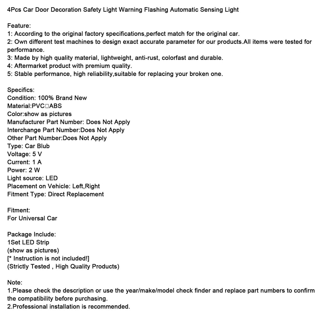4Pcs Car Door Decoration Safety Light Warning Flashing Automatic Sensing Light