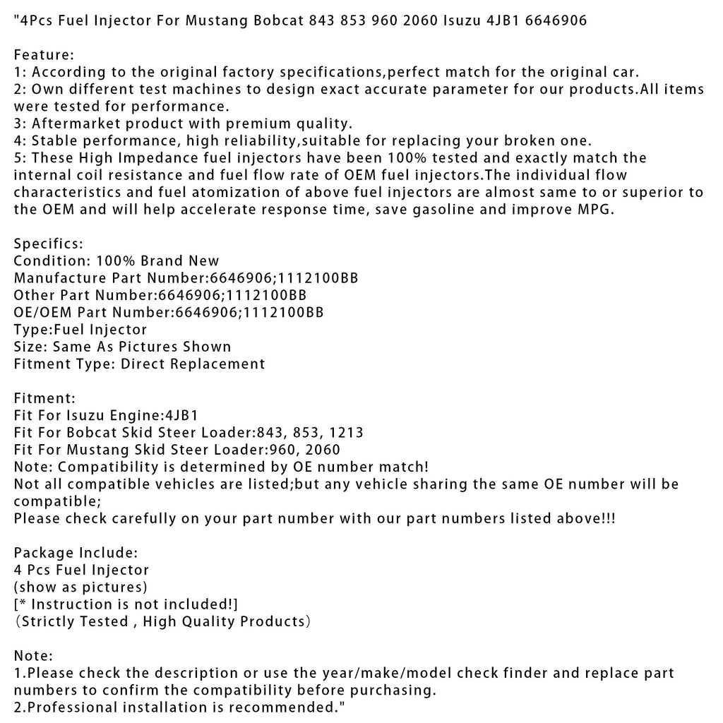 4 Stück Einspritzdüsen für Mustang, Bobcat 843, 853, 960, 2060, Isuzu 4JB1 6646906