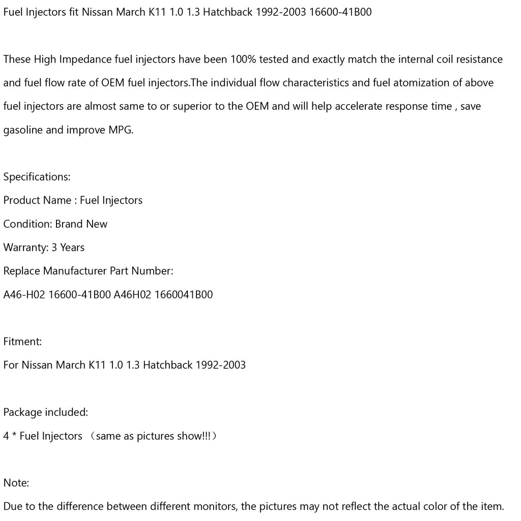 Dessa högimpedansinjektorer har testats till 100 % och matchar exakt det interna spolmotståndet och bränsleflödet hos OEM-injektorer för att förbättra svarstiden, spara gas och MPG.