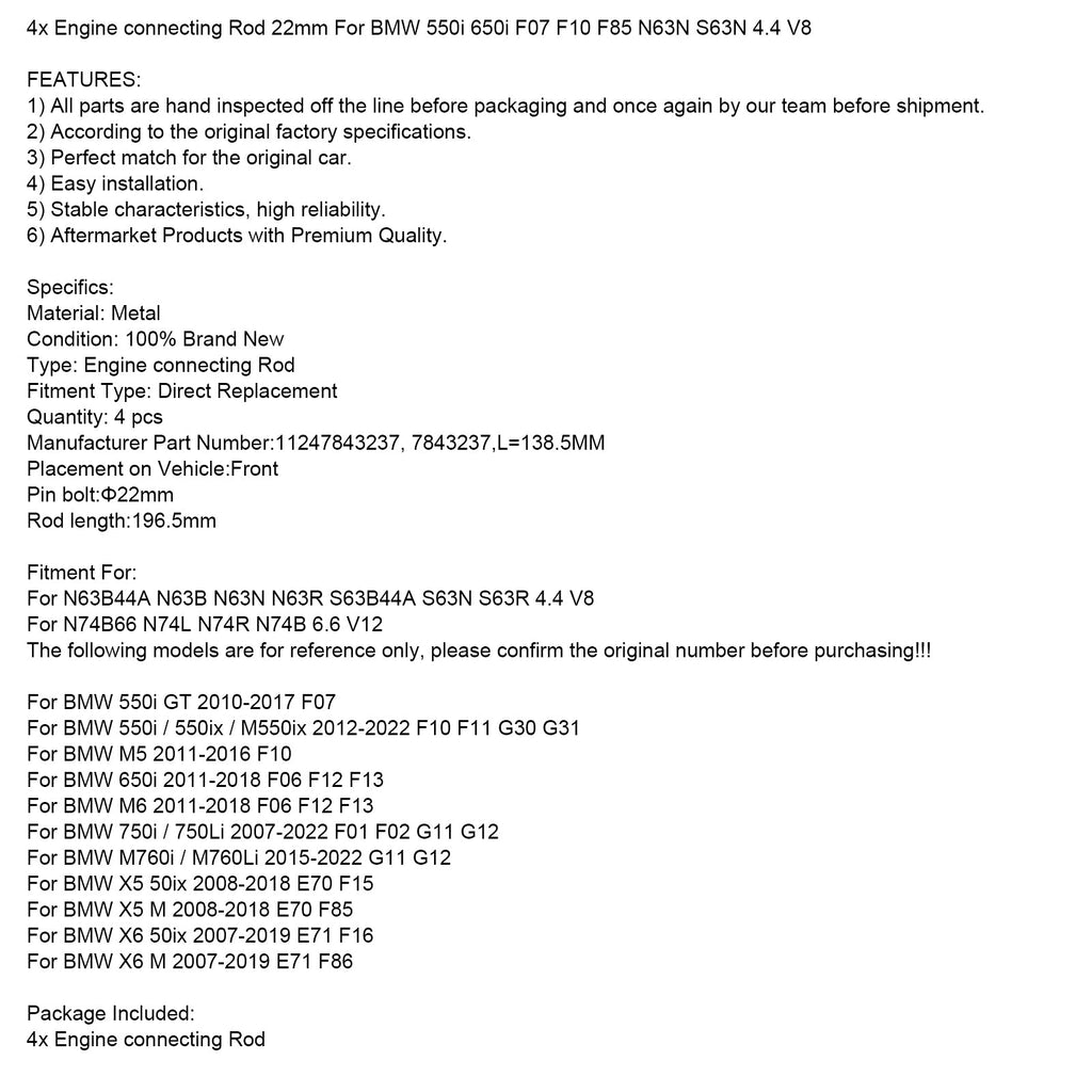 4x Engine connecting Rod 22mm For BMW 550i 650i F07 F10 F85 N63N S63N 4.4 V8