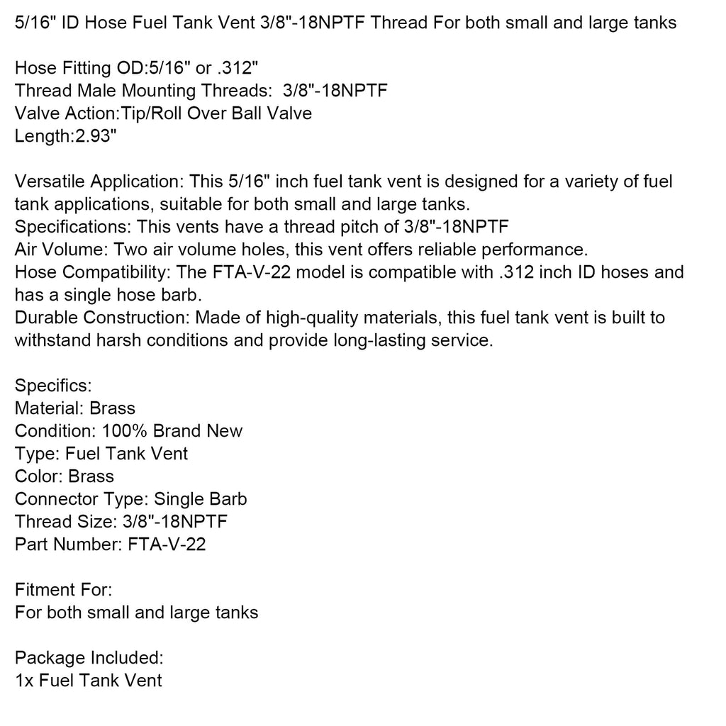 5/16"" ID Schlauch Kraftstofftankentlüftung 3/8""-18NPTF Gewinde Für kleine und große Tanks