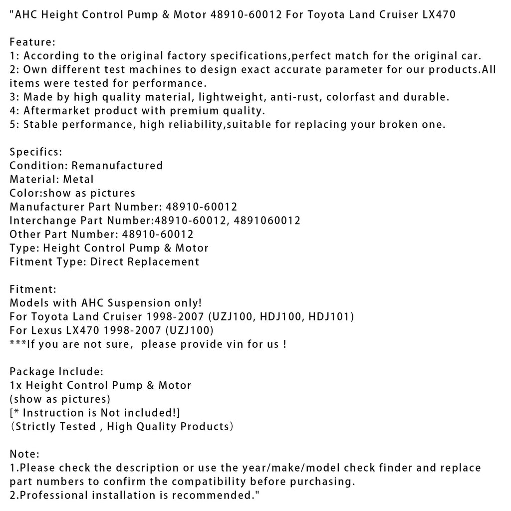 AHC Höhenverstellpumpe & Motor 48910-60012 für Toyota Land Cruiser LX470