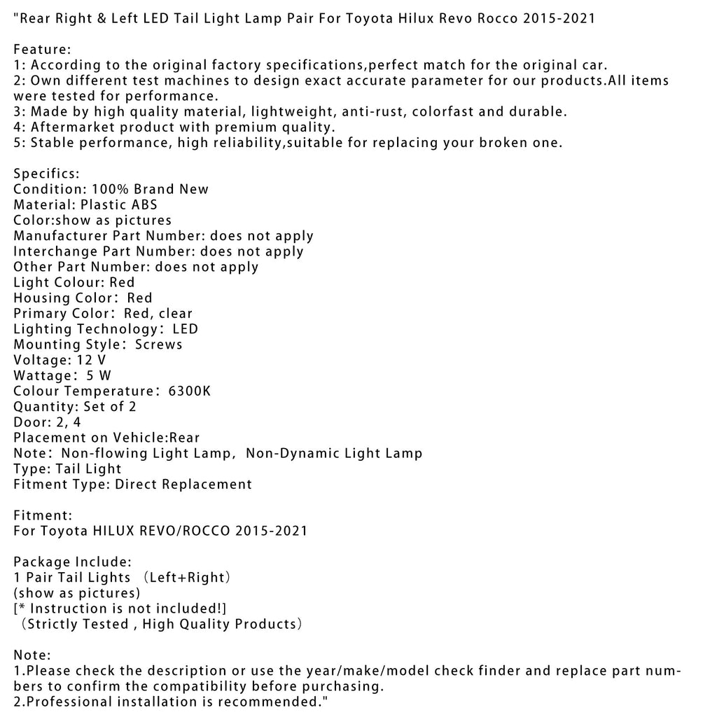 Bak höger och vänster LED-bakljuslampa par för Toyota Hilux Revo Rocco 2015-2021