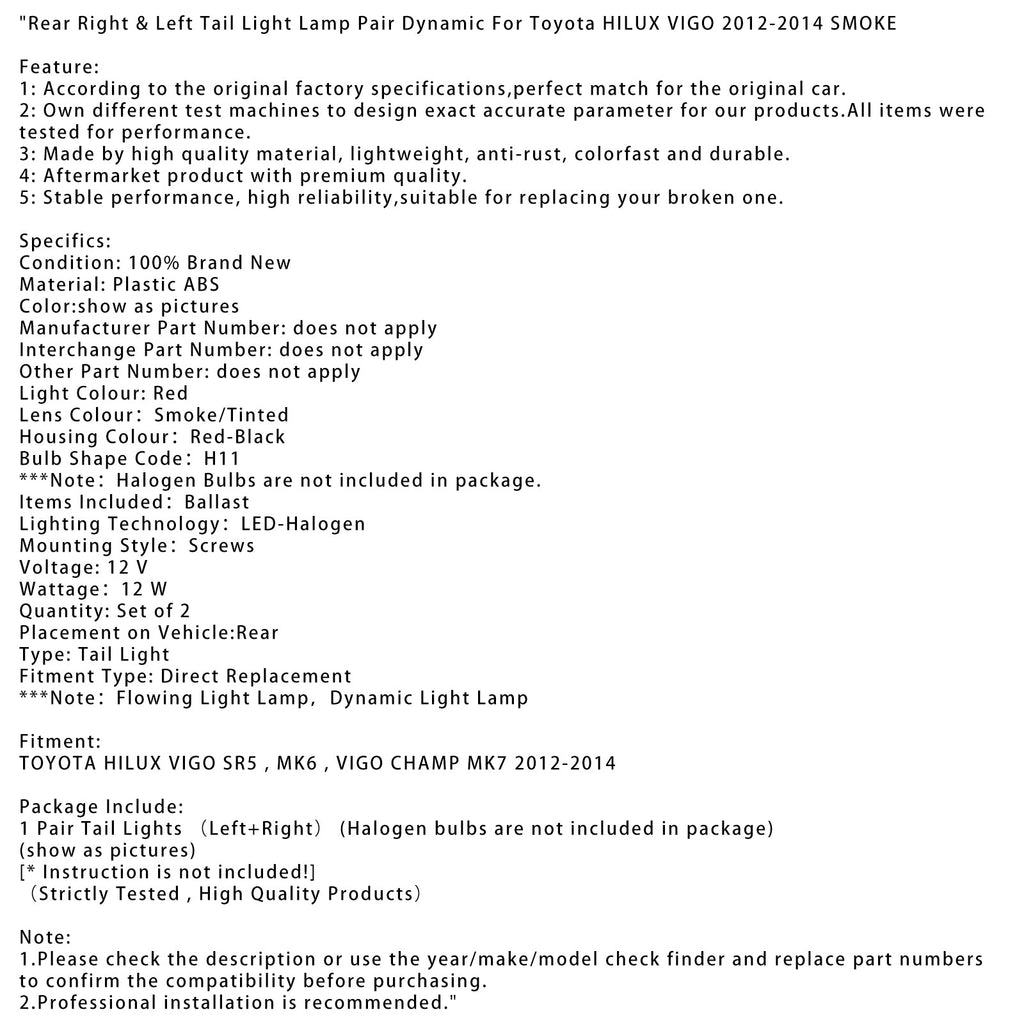 Bakljus höger & vänster bakljuspar dynamiskt för Toyota HILUX VIGO 2012-2014 SMOKE