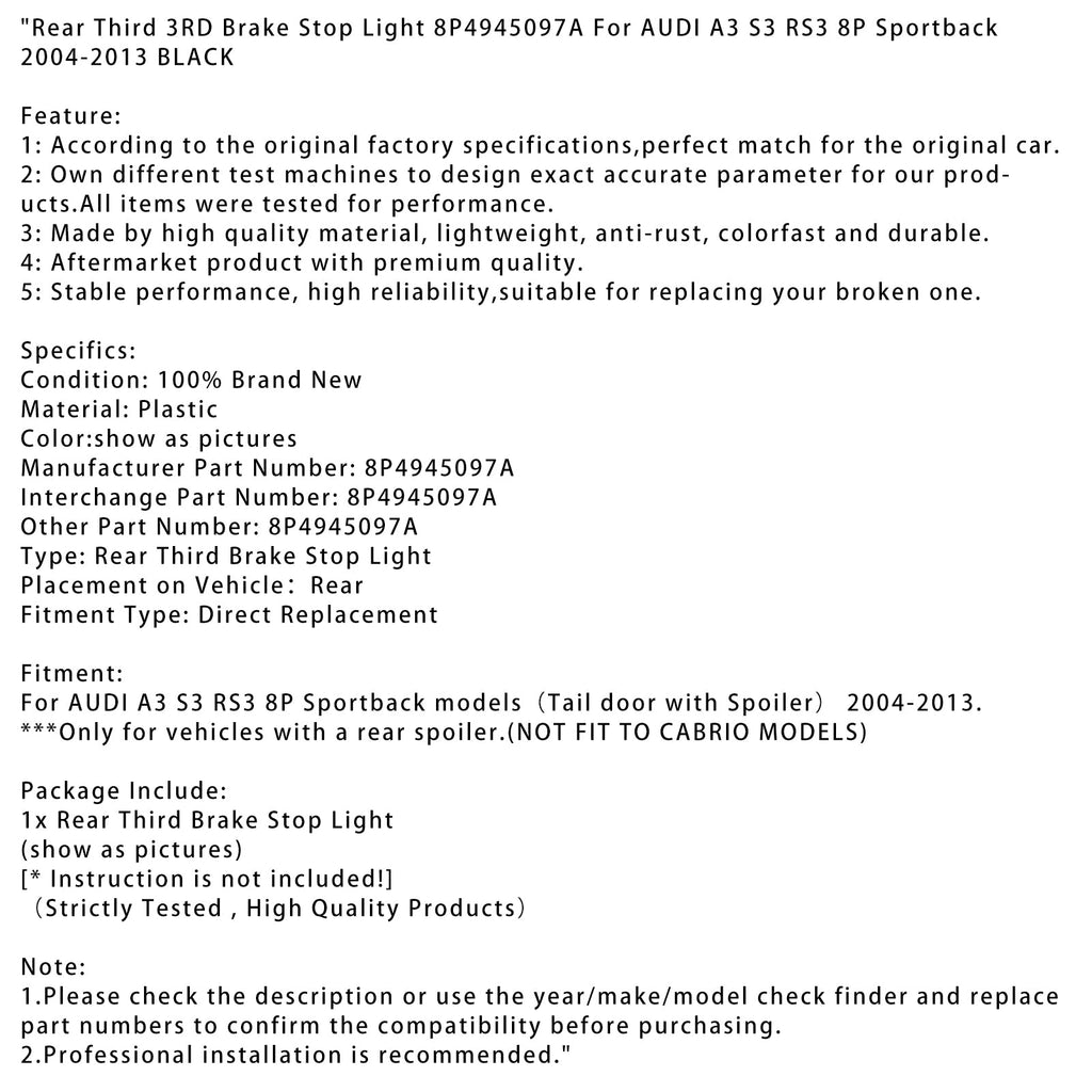Bakre tredje 3:e bromsstoppljus 8P4945097A för AUDI A3 S3 RS3 8P Sportback 2004-2013 SVART