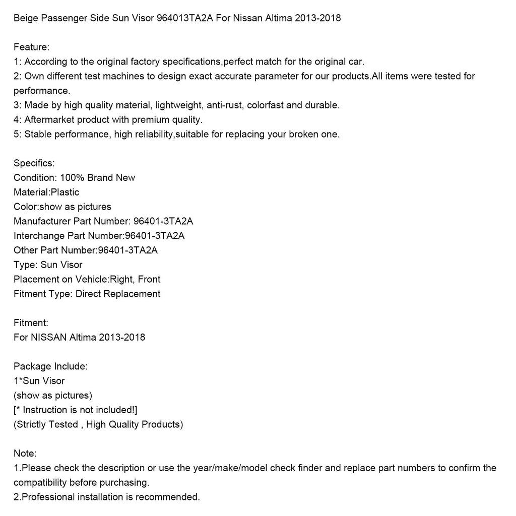 Beige Passenger Side Sun Visor 964013TA2A Fit For Nissan Altima 2013-2018