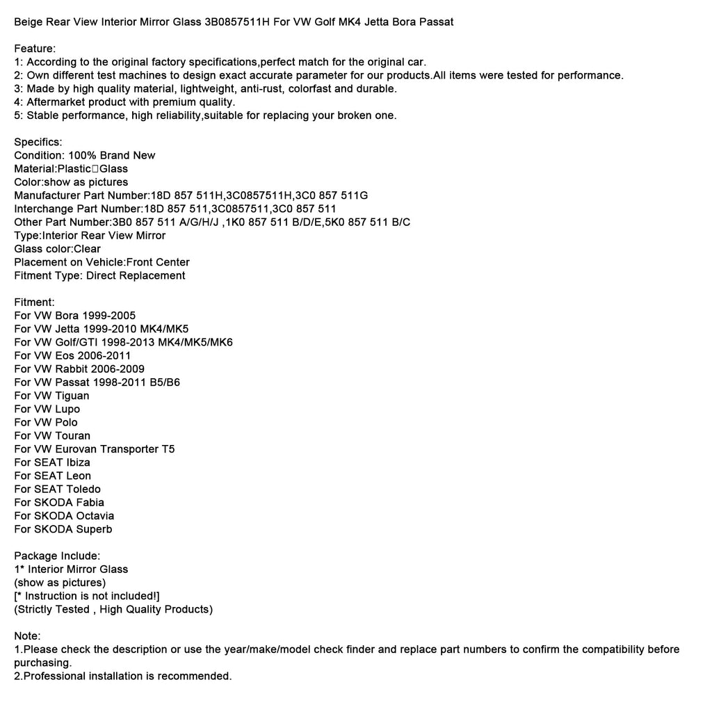 Beige Rückansicht Innenspiegel Glas 3B0857511H Für VW Golf MK4 Jetta Bora Passat