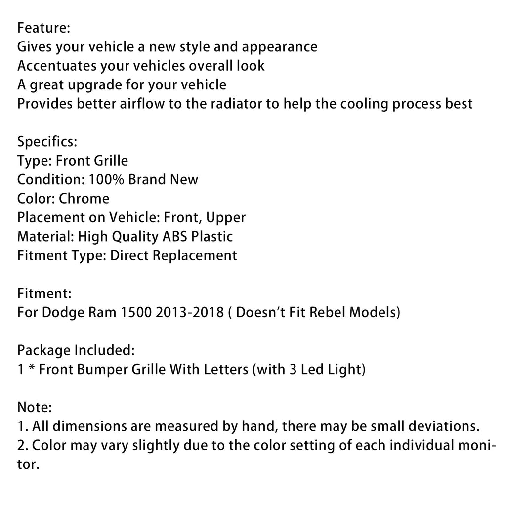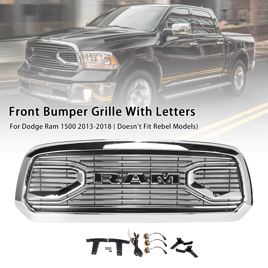 Big Horn Style Frontstoßstangengrill Grille Fit Dodge Ram 1500 2013-2018 Chrom