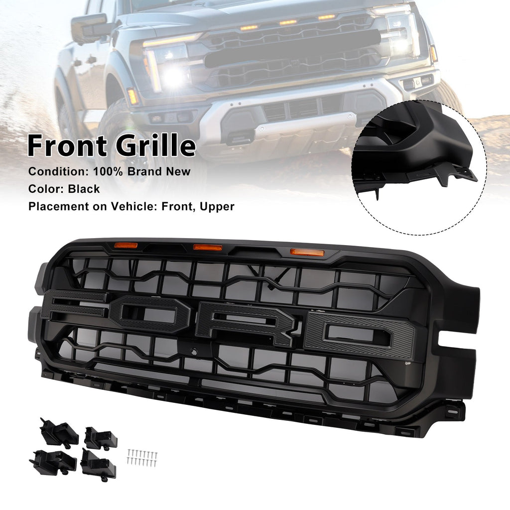 Schwarzer Frontstoßstangengrill passend für Ford F150 ab Baujahr 2024 mit LED-Beleuchtung