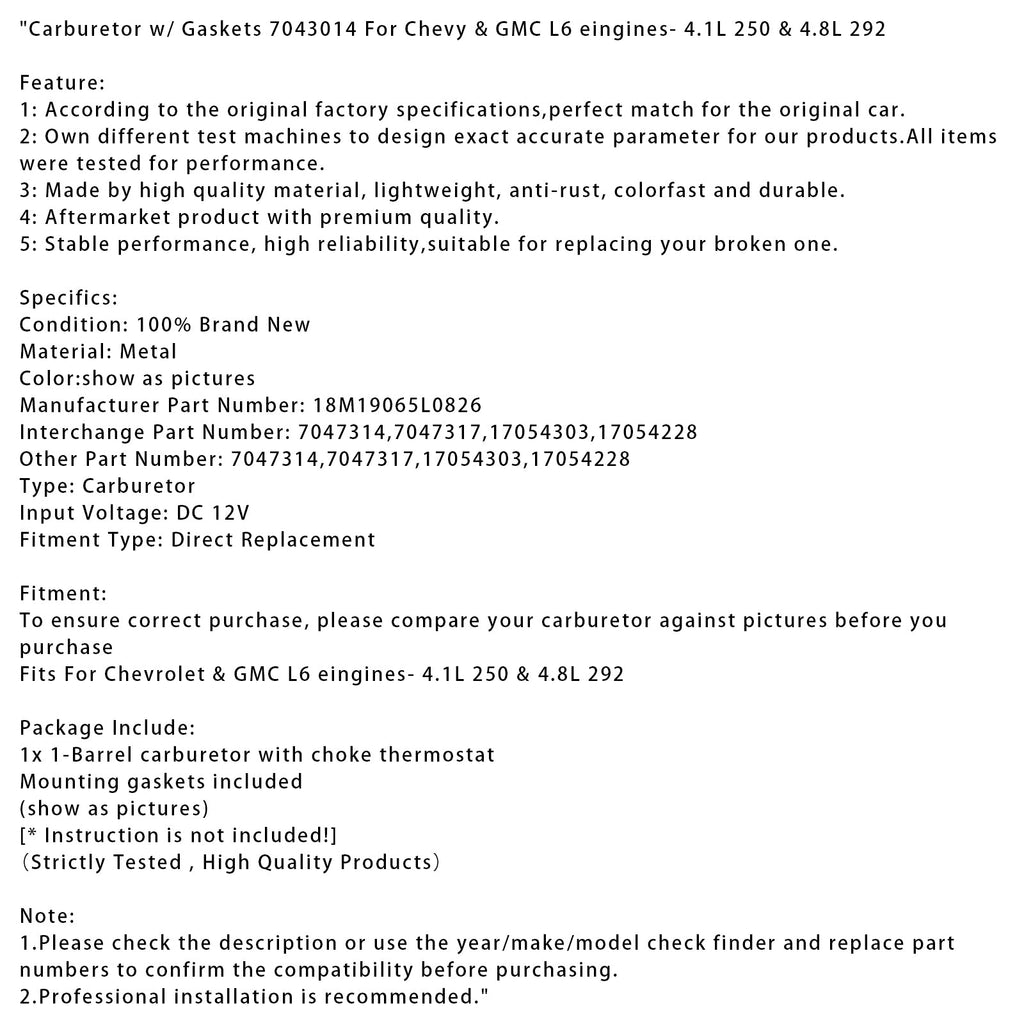 Vergaser mit Dichtungen 7043014 für Chevy & GMC L6-Motoren – 4,1 l 250 und 4,8 l 292