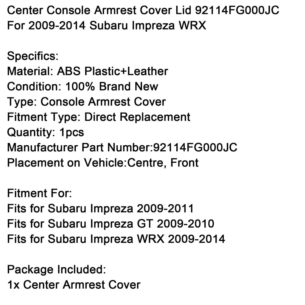 Center Console Armlehne Abdeckung Deckel 92114FG000JC Für 2009-2014 Subaru Impreza WRX