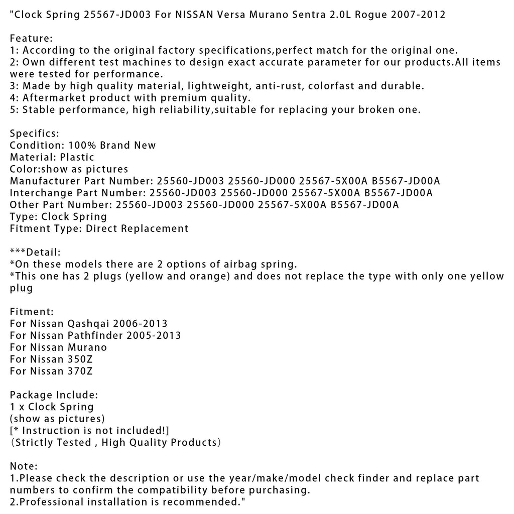 Wickelfeder 25567-JD003 Für NISSAN Versa Murano Sentra 2.0L Rogue 2007-2012
