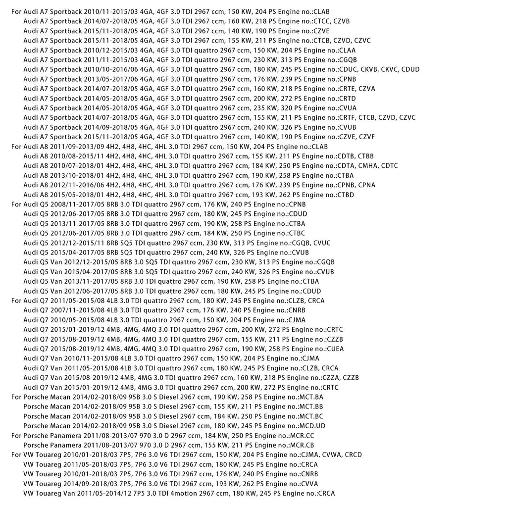 Für Audi Q7 Kastenwagen 2015/08-2019/12 4MB, 4MG 3.0 TDI quattro 2967 cm³, 160 kW, 218 PS Motornummer: CZZA, CZZB