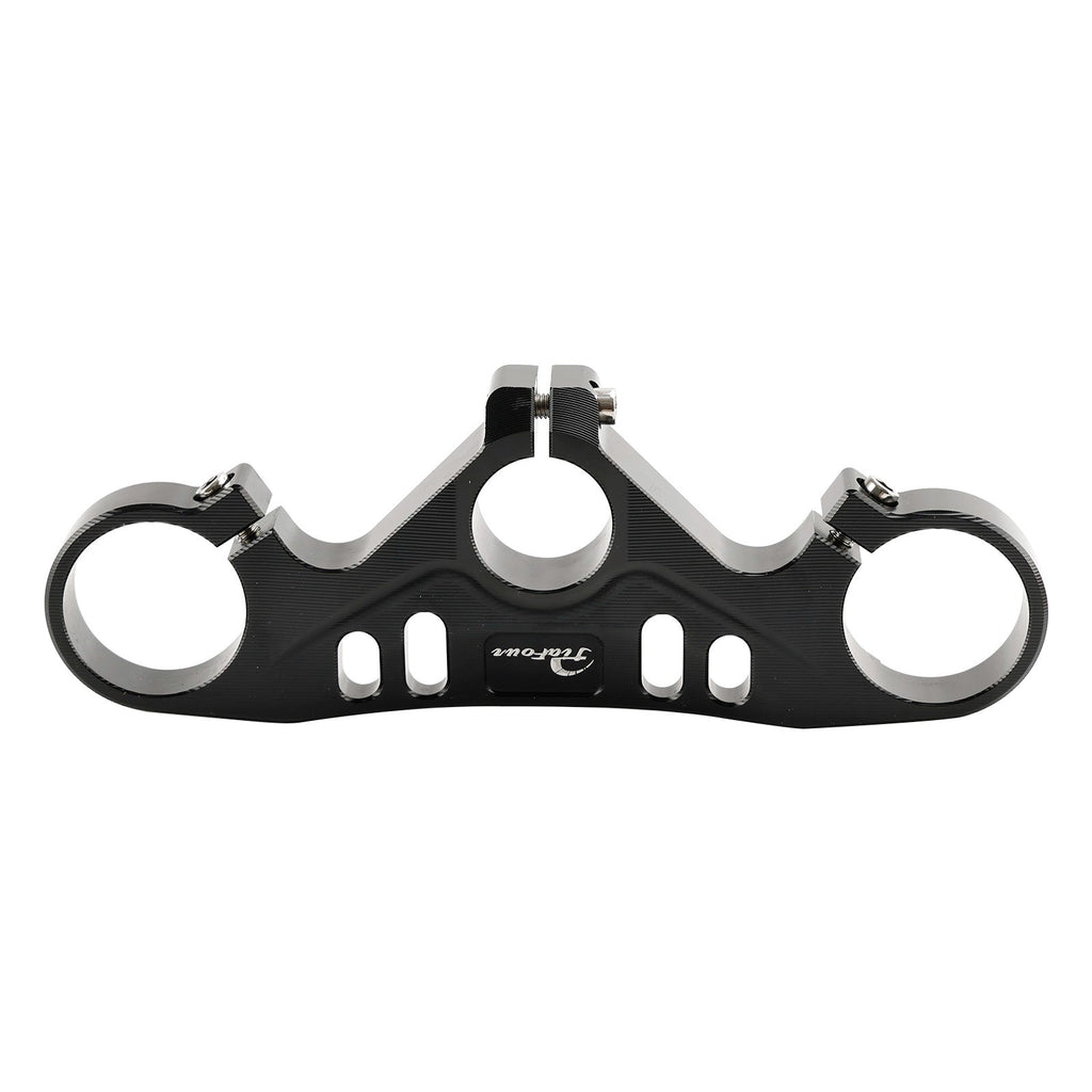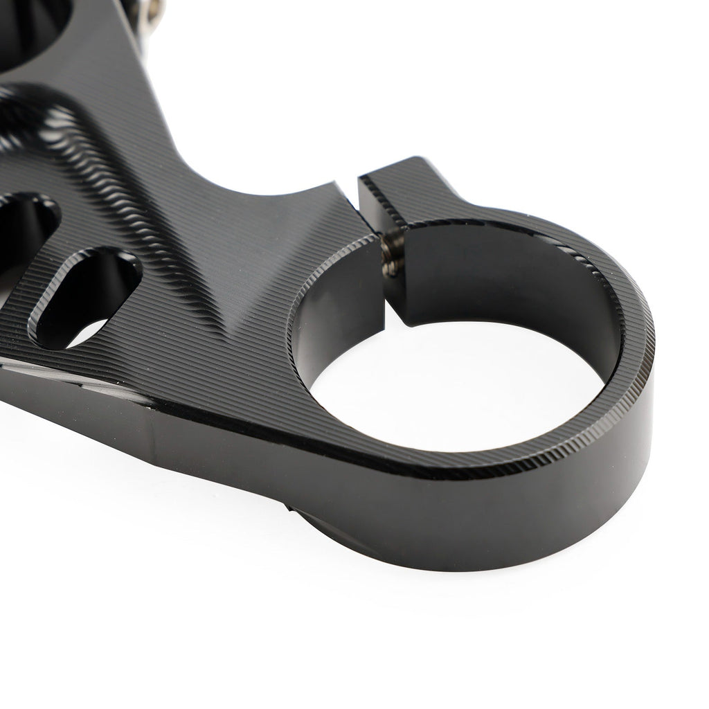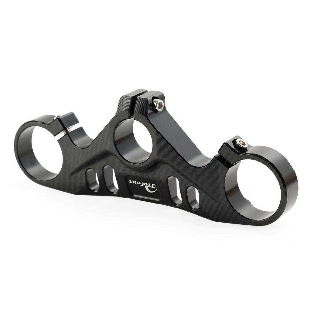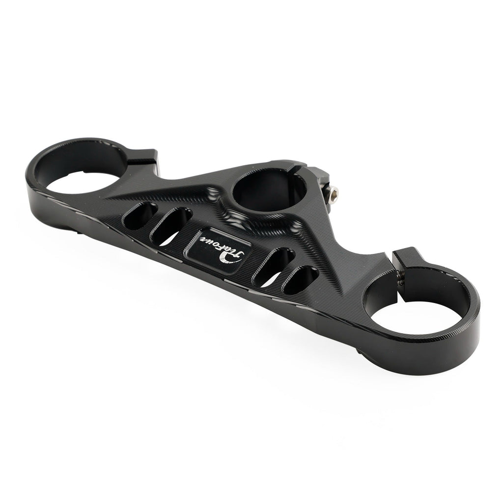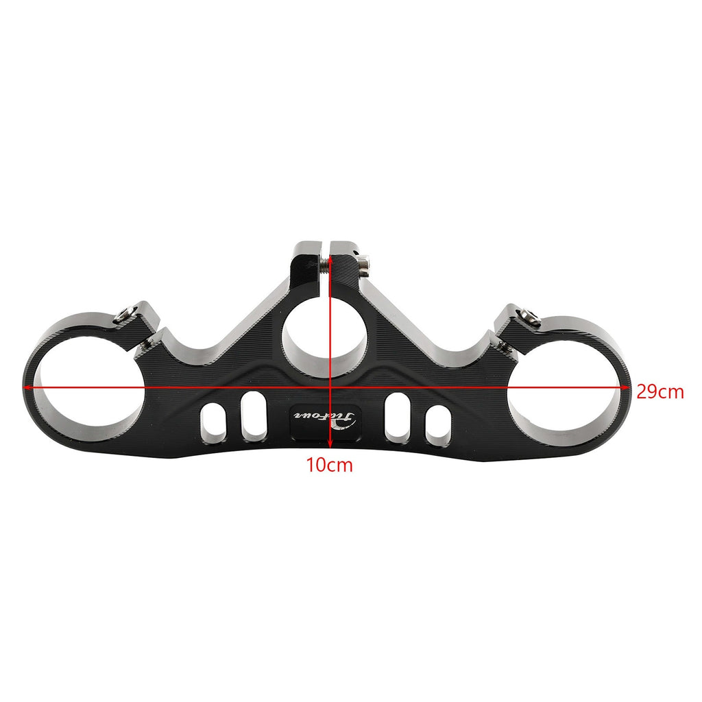 De övre trippelklämmorna är gjorda av massivt aluminiumblock, vilket är mer stabilt och pålitligt än pressgjutningsprocessen och har ett vackrare utseende. Anodiserad för att säkerställa att den inte bleknar under lång tid. Efter GP-stilen är den symmetriska ihåliga designen lättare och starkare, vilket gör den mer stridsinriktad.