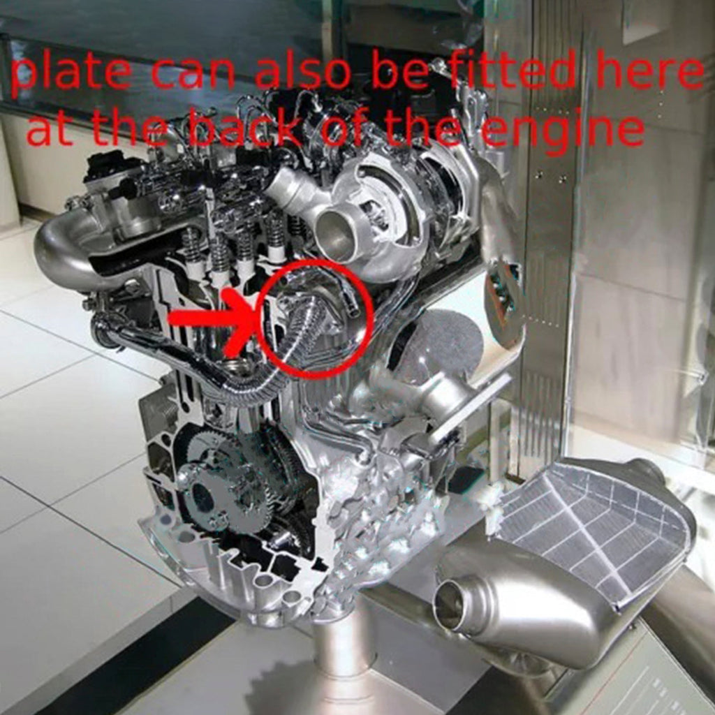 Detta gäller för M9R DCi (1995 cc) Euro4 och Euro5 (Vauxhalls är CDTi). Denna förslutningsplatta är tillverkad av laserskuret 1,5 mm tjockt 304 rostfritt stål och har trumlats för att göra den slät och ge den en repad yta för bättre tätning. Den passar mellan avgasförlängningsröret och EGR-kylaren (se bilder), som hålls på plats av två skruvar på motorns framsida. Kan även monteras baktill bredvid turbon. Plattan ska INTE monteras på själva EGR-ventilen, eftersom denna har en klaffventil och öppnar mot anslutningsröret, vilket kan stoppa dess rörelse och försätta den i nödläge.