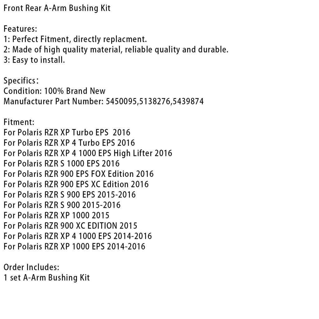 Främre Bakre Styrarmsbussningssats Passar för Polaris RZR 900 EPS 1000 XP 4 14-16