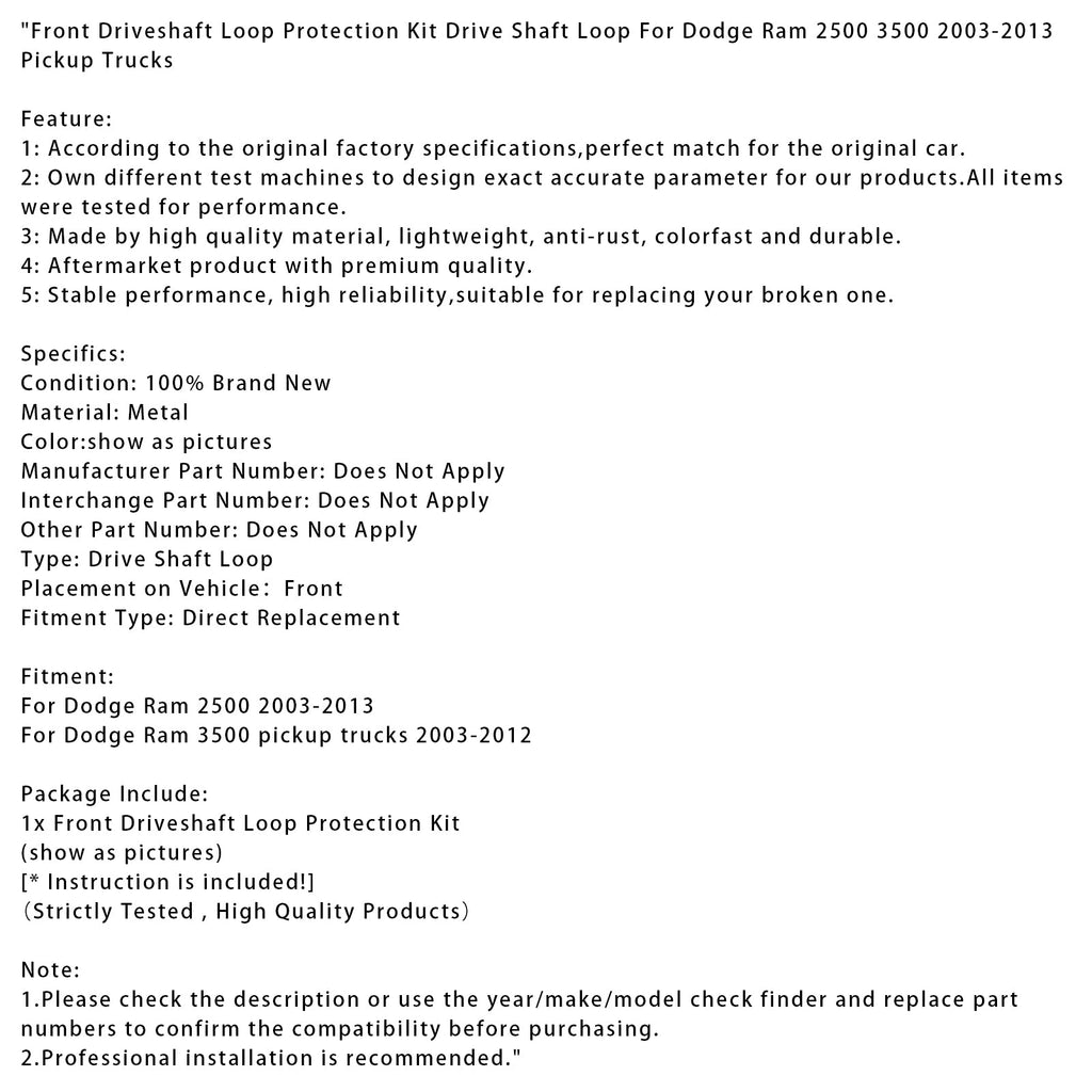 Front Driveshaft Loop Protection Kit Drive Shaft Loop For Dodge Ram 2500 3500 2003-2013 Pickup Trucks