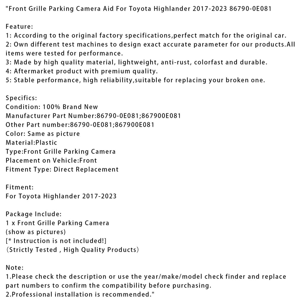 Frontgrill-Einparkhilfe mit Kamera, passend für Toyota Highlander 2017-2023, Teilenummer 86790-0E081