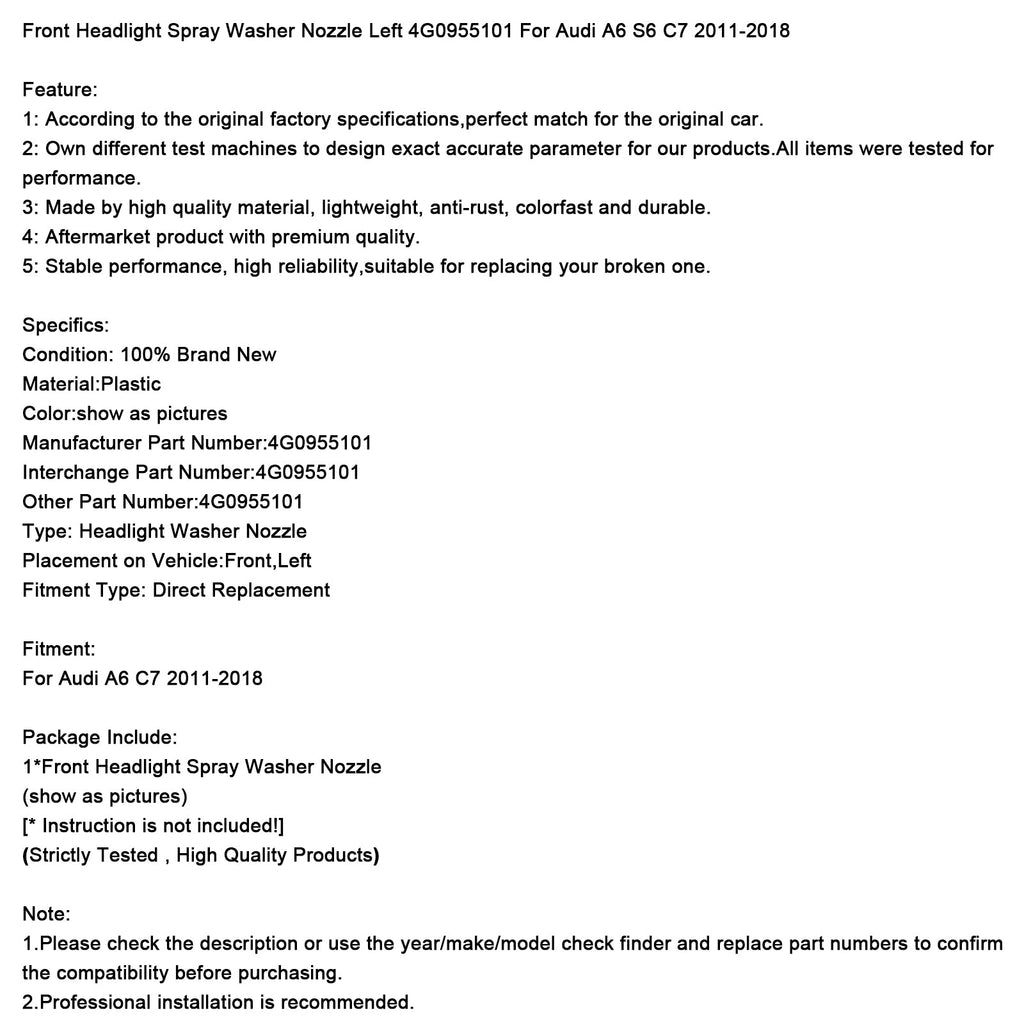 Frontscheinwerfer-Waschdüse links 4G0955101 Passend für Audi A6 S6 C7 2011-2018