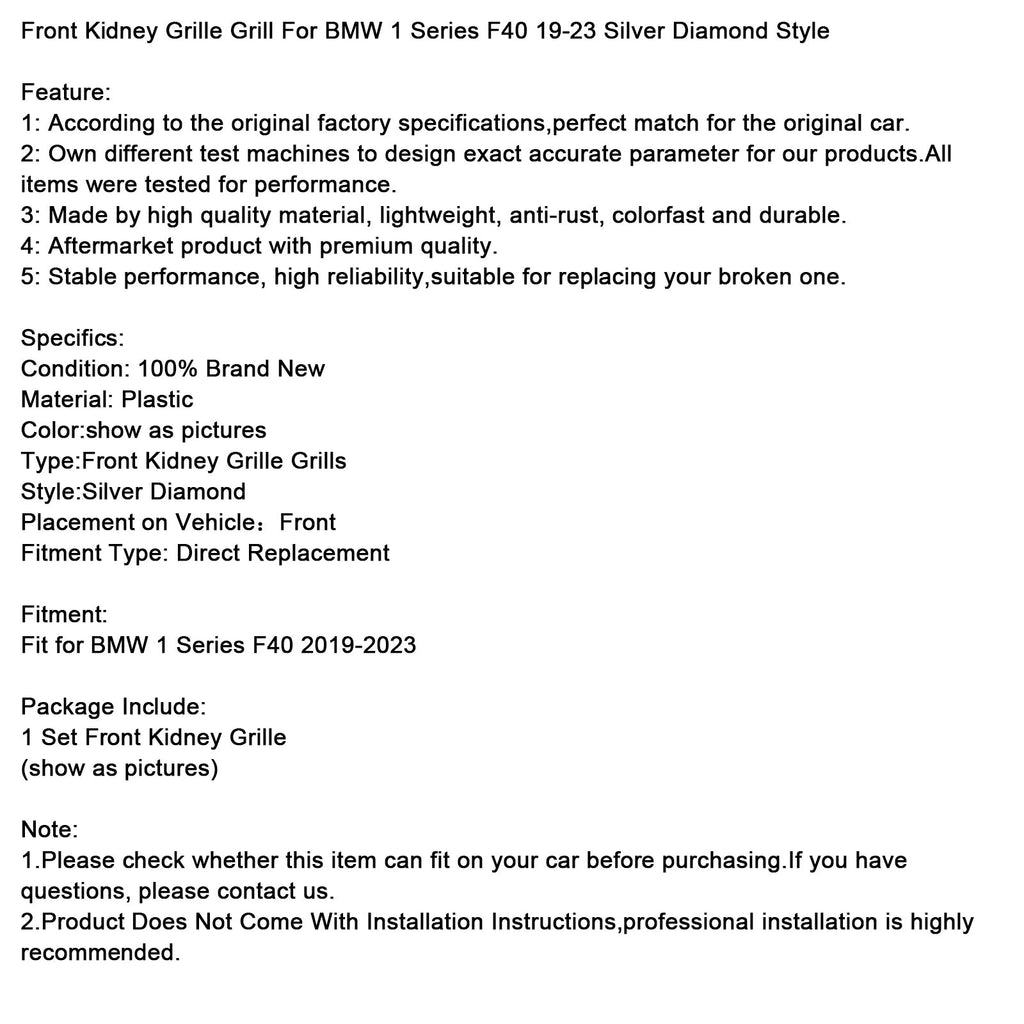 Front Kidney Grille Grill For BMW 1 Series F40 19-23 Silver Diamond Style
