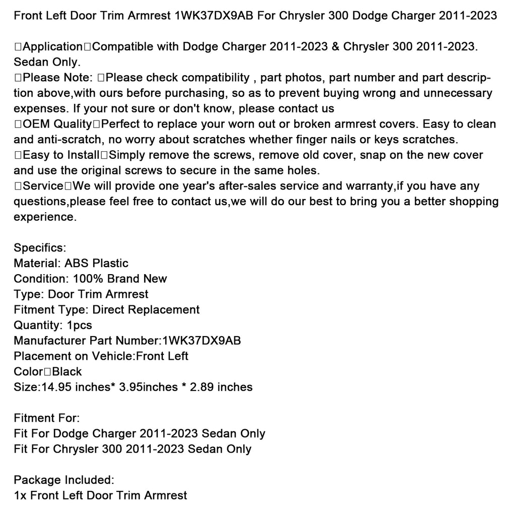 Vorne Links Tür Trim Armlehne 1WK37DX9AB Für Chrysler 300 Dodge Charger 2011-2023