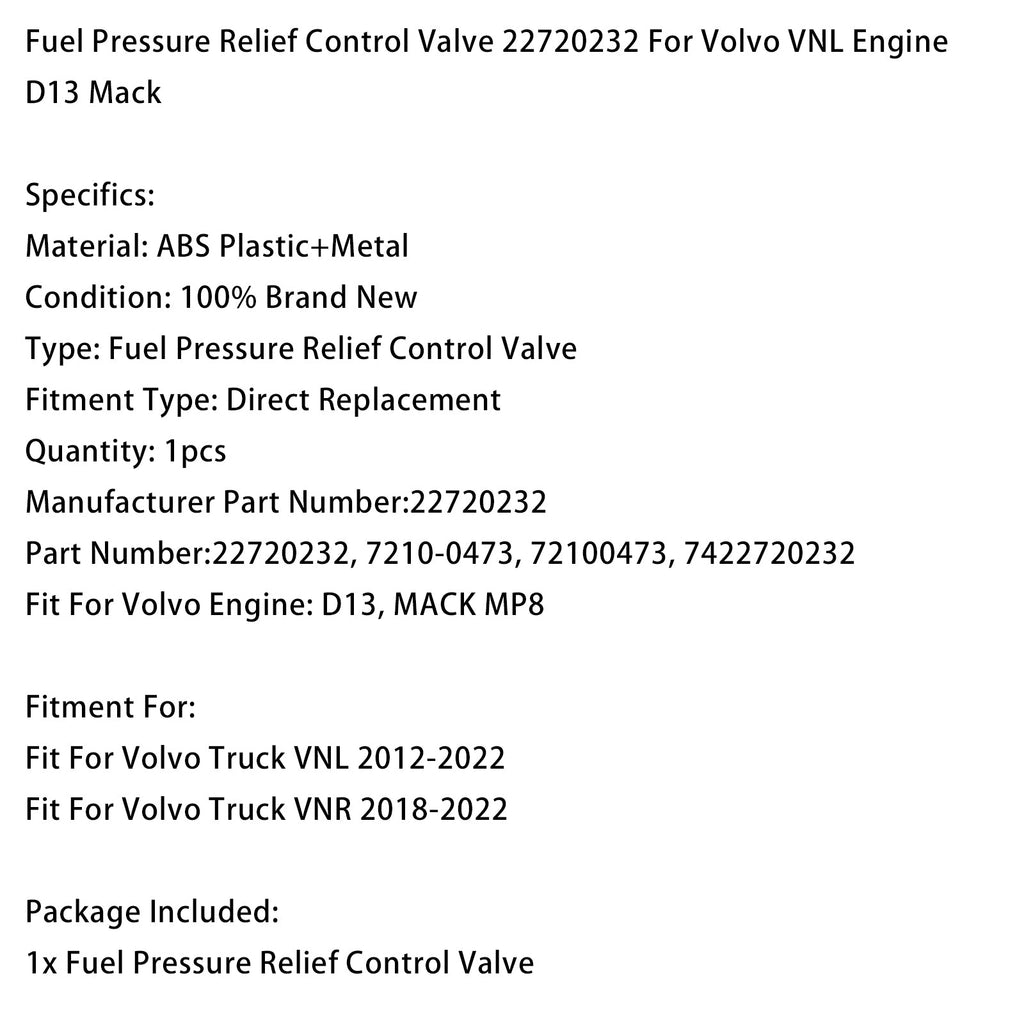 2012–2022 Volvo Truck VNL Kraftstoffdruck-Entlastungssteuerventil 22720232