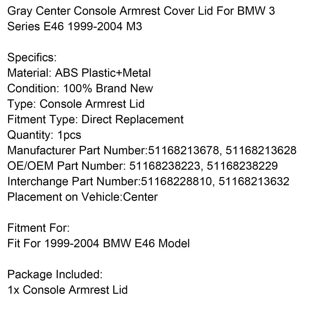 Grau Center Console Armlehne Abdeckung Deckel Für BMW 3 Serie E46 1999-2004 M3