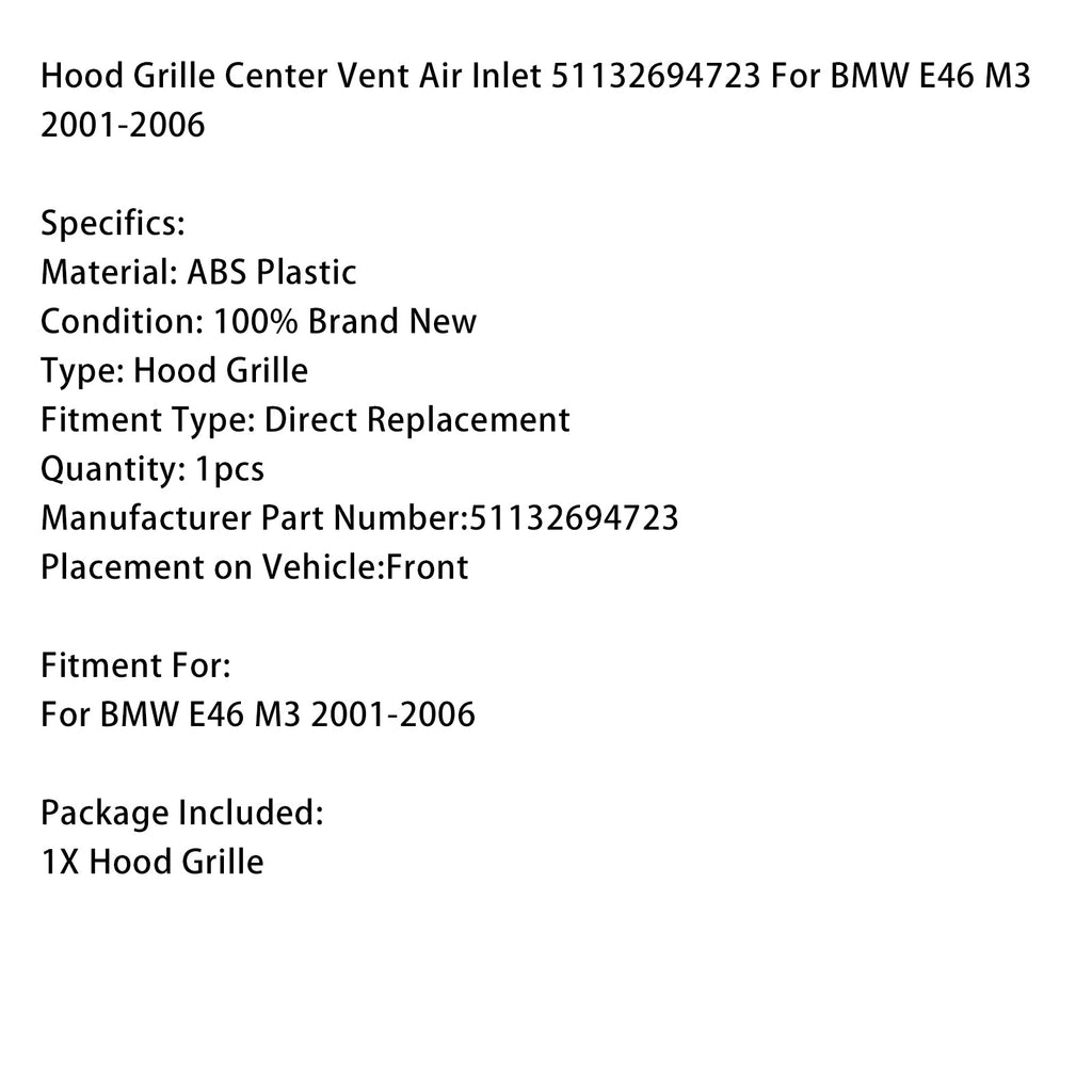 Haube Grille Zentrum Vent Lufteinlass 51132694723 Für BMW E46 M3 2001-2006