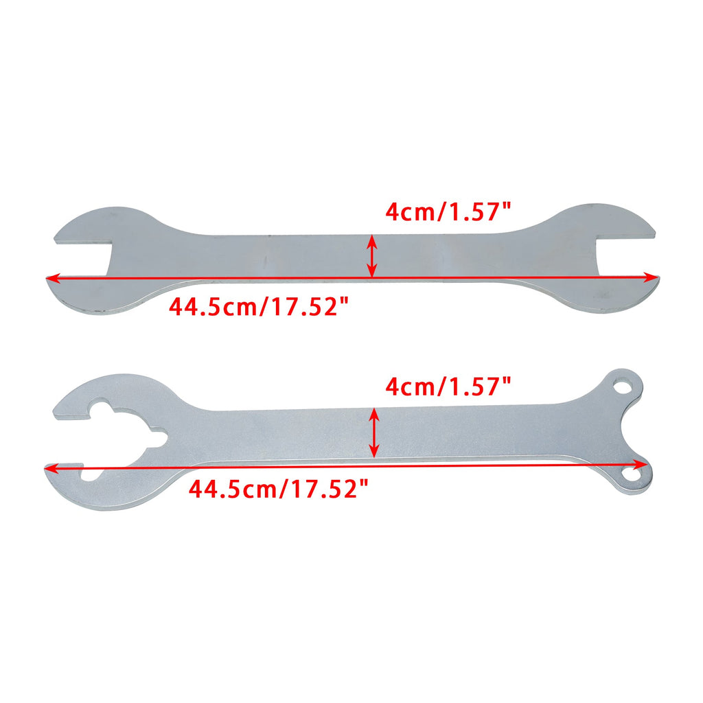 Skiftnyckeln med den dubbla käftöppningen passar navmuttrarna på den trögflytande fläkten på TD V6 Discovery 3 och Range Rover Sport V6 2,7 l. Den andra skiftnyckeln passar de 3 fläkthjulsbultarna. Du kan sedan använda båda verktygen för att lossa den trögflytande fläkten.