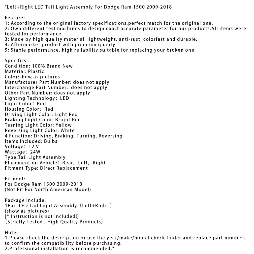 Links + Rechts LED Rücklicht Montage Für Dodge Ram 1500 2009-2018