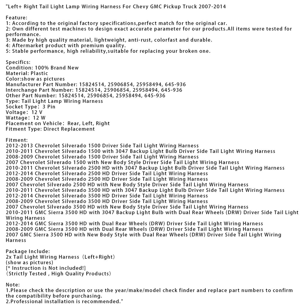 Links + Rechts Rücklicht Lampe Kabelbaum Für Chevy GMC Pickup Truck 2007-2014