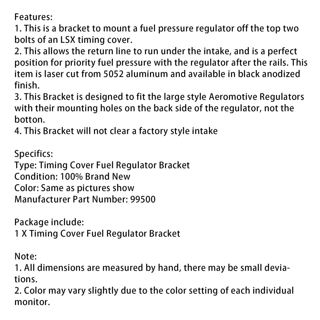 1. Dies ist eine Halterung zur Montage eines Kraftstoffdruckreglers an den oberen beiden Schrauben einer LSX-Steuergehäuseabdeckung.