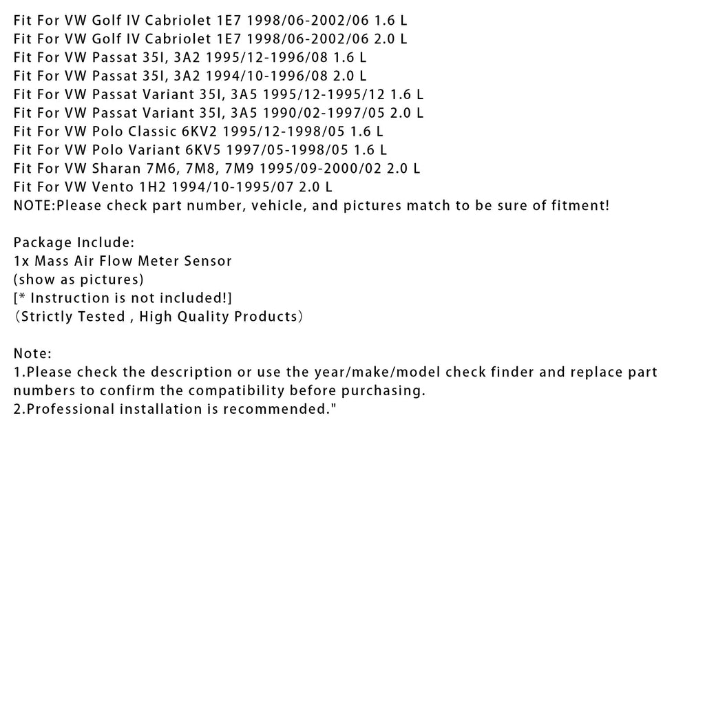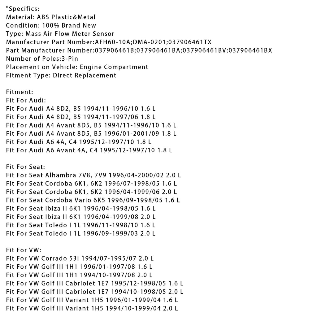 Mass Air Flow Meter Sensor For Audi A4 VW Golf III Cabriolet Corrado 037906461B