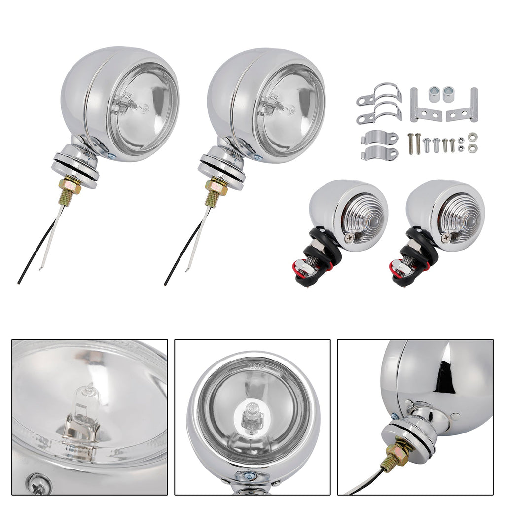 Motorcycle Beam Headlight Fog Lamp Custom Chrome #D19 For Racer Bobber Chopper