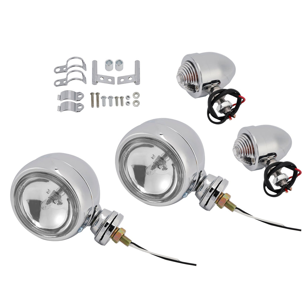 Motorcycle Beam Headlight Fog Lamp Custom Chrome Fits For Racer Bobber Chopper