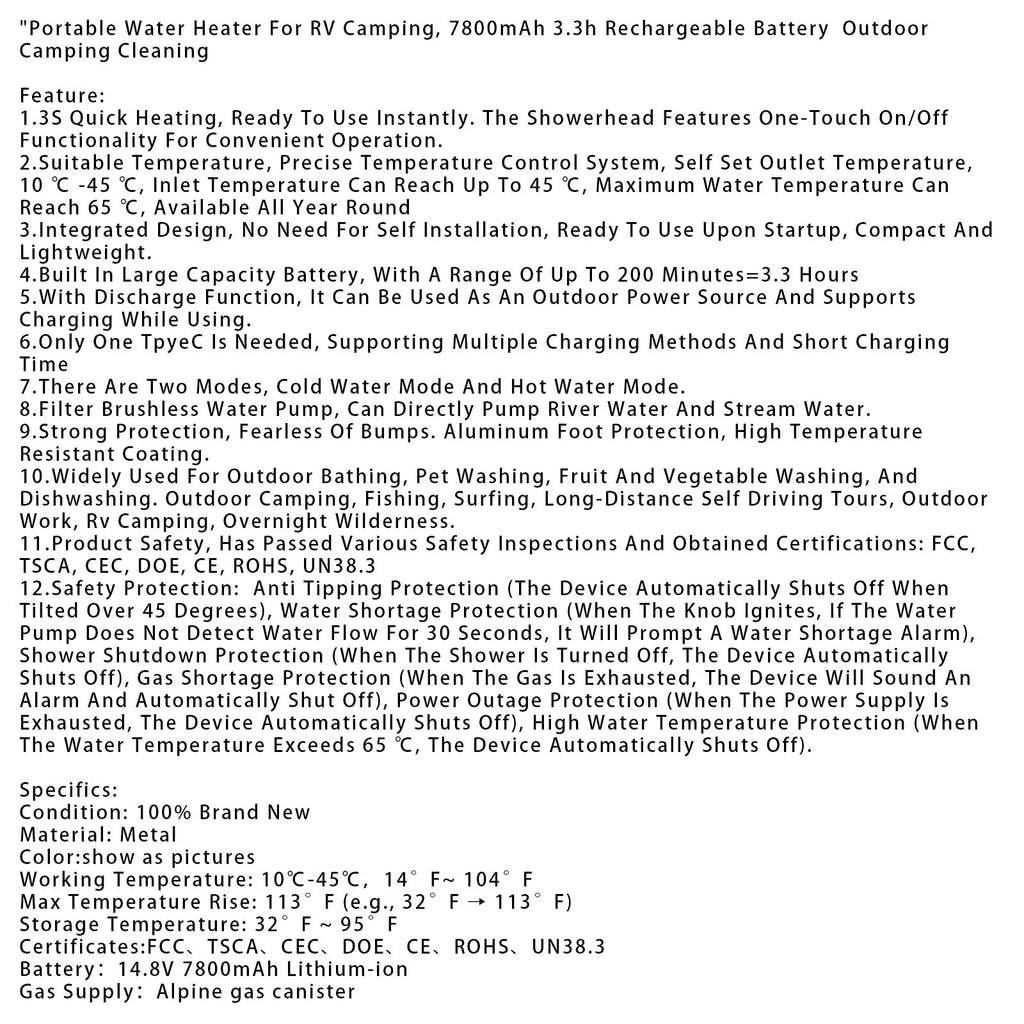 Tragbarer Wassererhitzer für Wohnmobil-Camping, 7800 mAh, 3,3 Stunden Laufzeit, wiederaufladbarer Akku, Outdoor-Reinigung