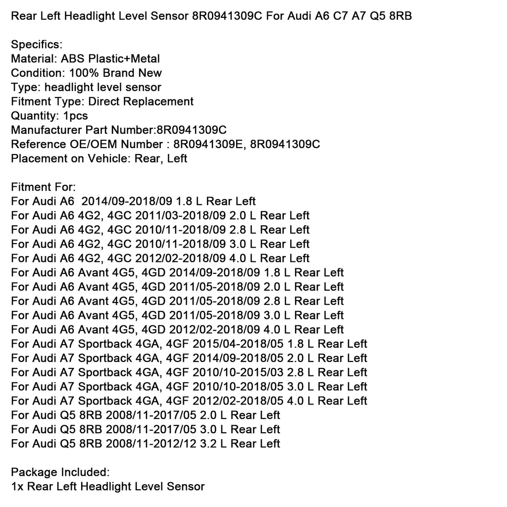 Hinten Links Scheinwerfer Level Sensor 8R0941309C Für Audi A6 C7 A7 Q5 8RB