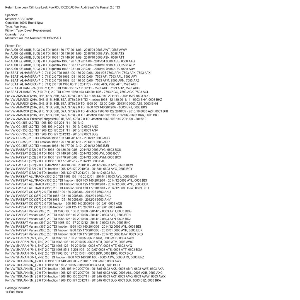 Return Line Leak Oil Hose Leak Fuel 03L130235AD For Audi Seat VW Passat 2.0 TDI