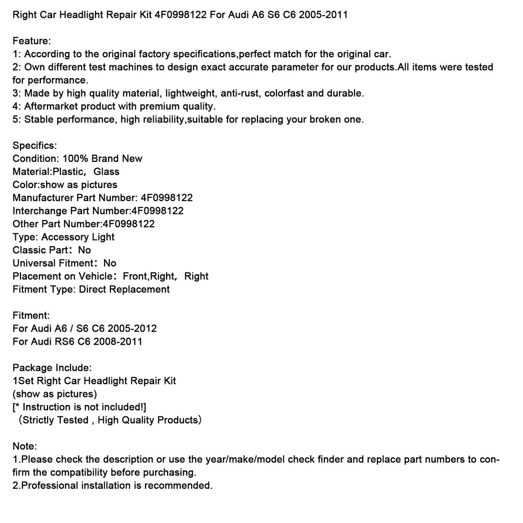 Rechtes Auto-Scheinwerfer-Reparatur-Set 4F0998122 für Audi A6 S6 C6 2005-2011