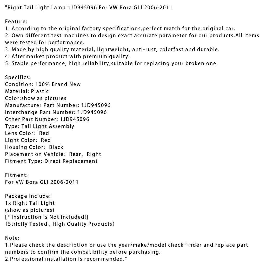 1. Bitte überprüfen Sie vor dem Kauf die Beschreibung oder verwenden Sie die Teilenummern-Prüfung (Jahr/Marke/Modell) und vergleichen Sie die Teilenummern, um die Kompatibilität zu bestätigen.